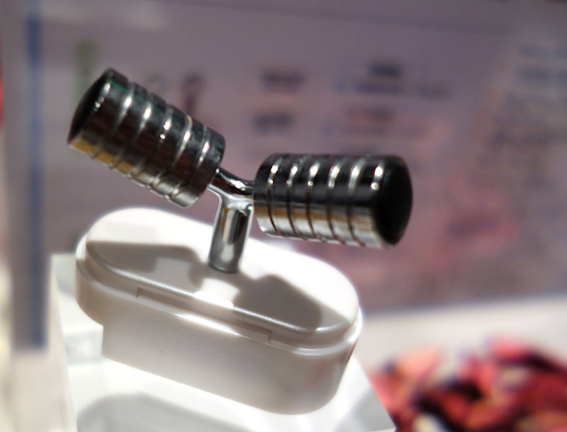 有緊緻及提升面部輪廓功效的「微電波提拉按摩頭」,透過高頻電通過高頻電波,讓水溶性精華素有效進入底層肌膚及皮下組織,並利用滾動刺激真皮層增生更多膠原,緊緻面部線條。